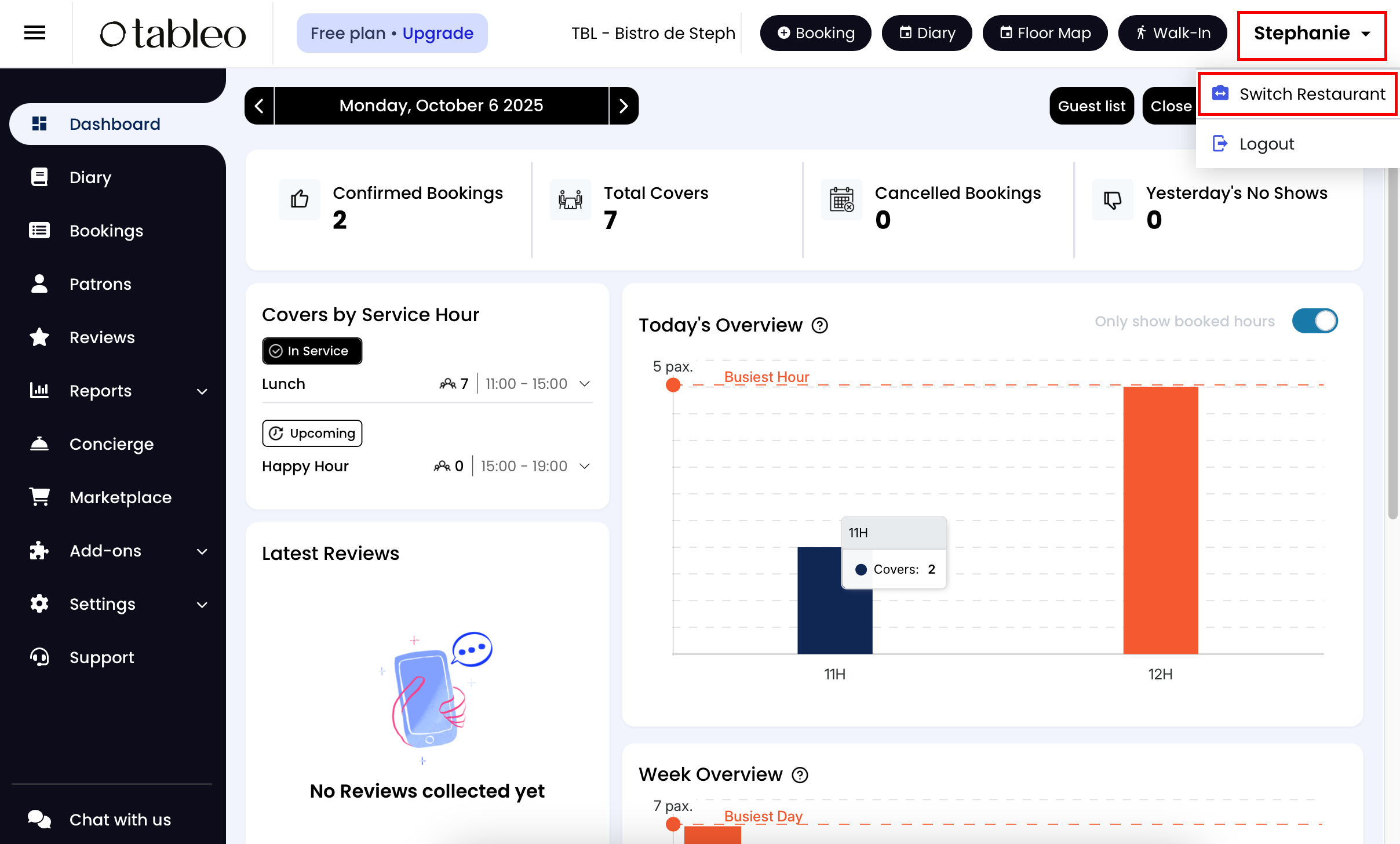 If you manage more than one restaurant on Tableo, then you can switch between their profiles in either of the two following methods: