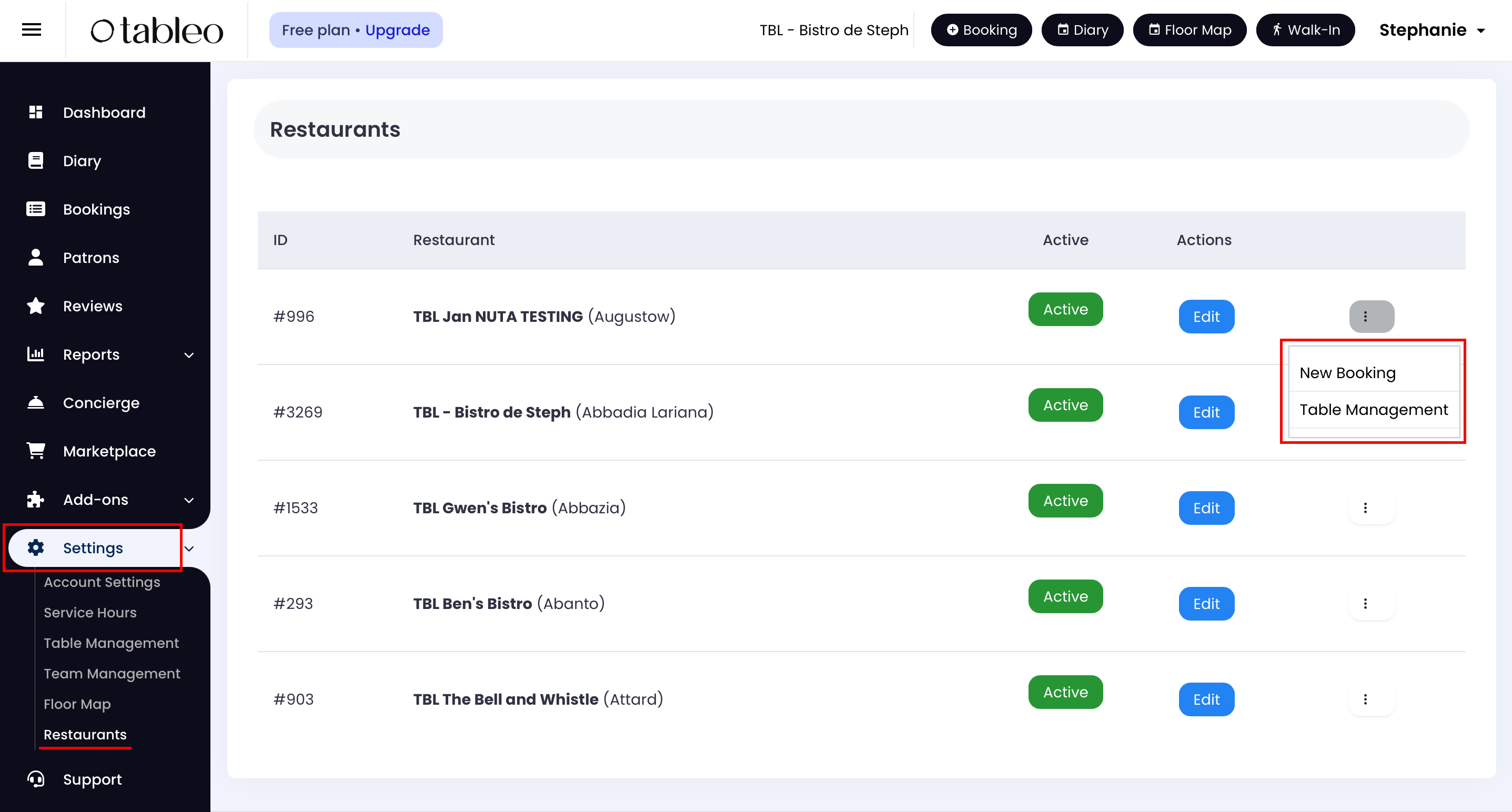 Alternatively, if you want to view your restaurants or add bookings to them: