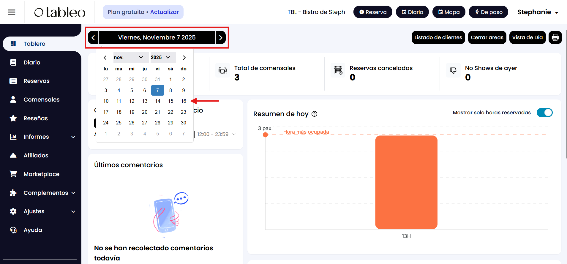 1. En tu tablero, haz clic en la fecha. Se abrirá un calendario.