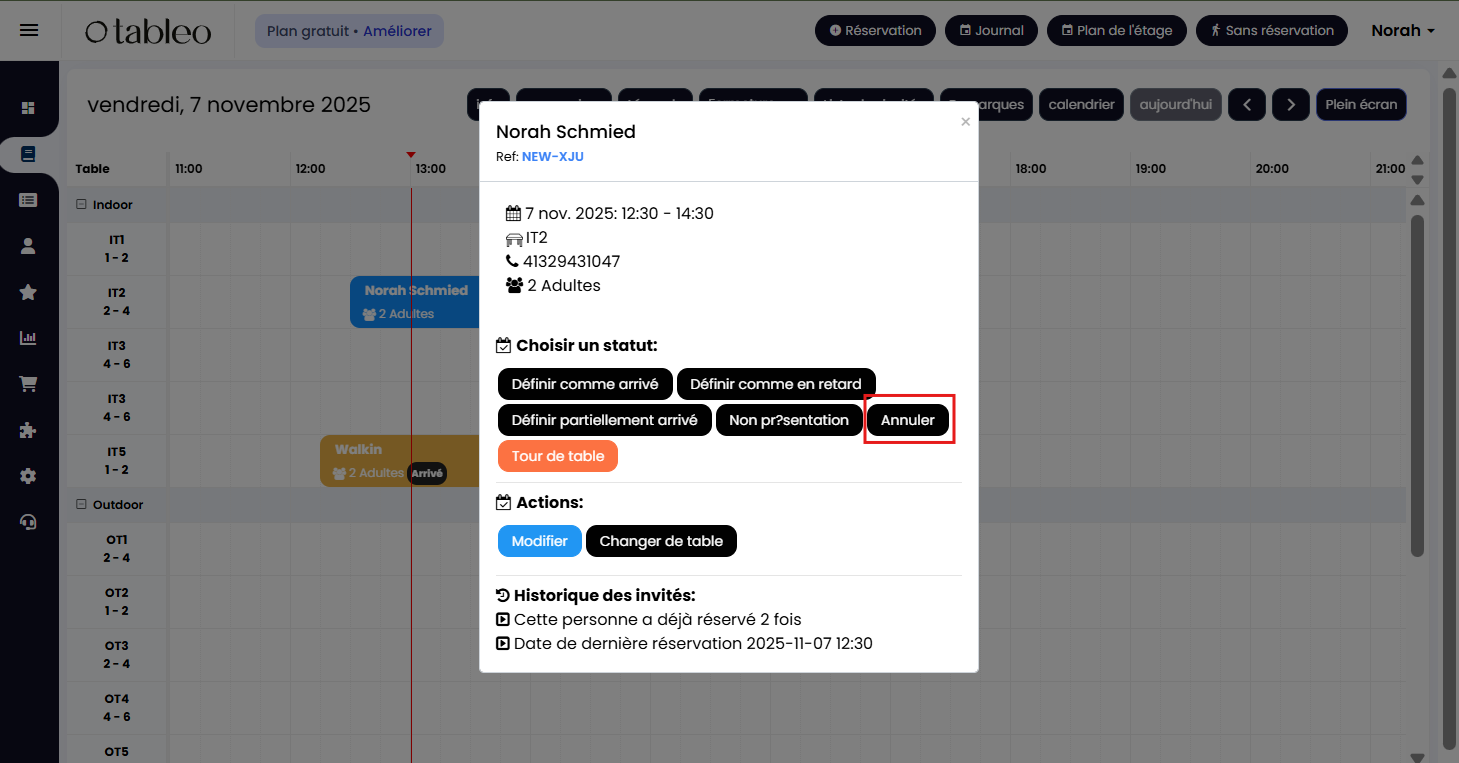 3. Cliquez sur la réservation et définissez le statut sur Annuler.