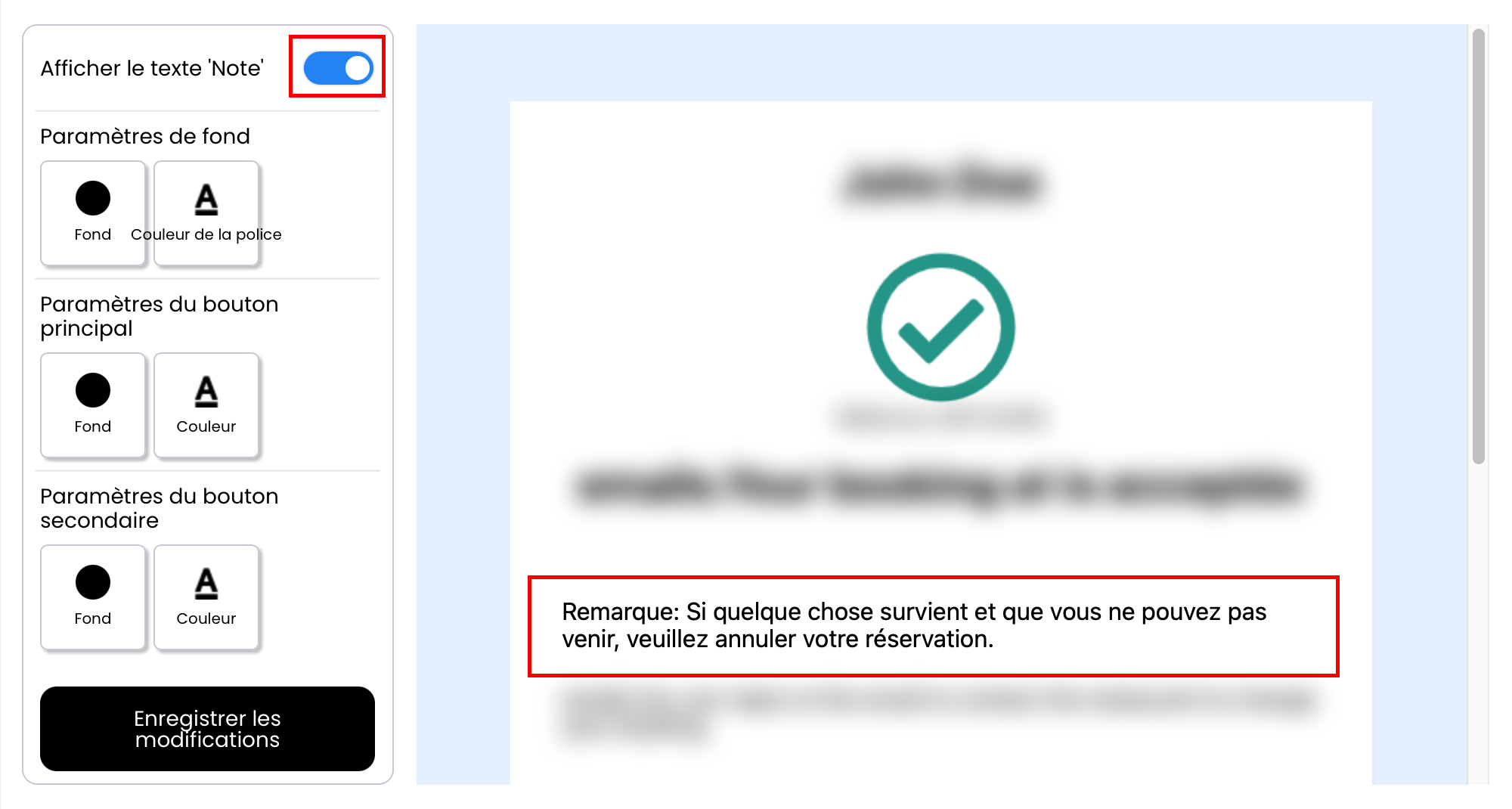 Dans le menu latéral, accédez aux Paramètres > Paramètres de réservation > Personnalisation des e-mails.